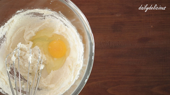 ใส่น้ำตาลทรายลงไป แล้วตีให้เข้ากัน