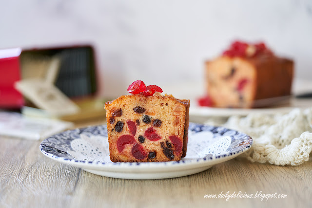 เป็นฟรุตเค้กแบบอังกฤษ ที่มีเชอรี่แดงเชื่อมเป็นส่วนประกอบ สำหรับเค้กสูตรนี้ ไม่จำเป็นต้องหมักผลไม้นานนะคะ แค่ข้ามคืนก็พอแล้ว
