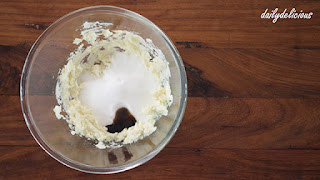 ใส่น้ำตาลทราย, เกลือ และวานิลลาลงไป ตีให้เข้ากัน