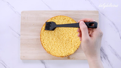 บางคนไม่ชอบทานสปันจ์เค้ก เพราะรู้สึกว่าเป็นเค้กที่แห้ง แต่ถ้าเราพรมน้ำเชื่อมลงไปเนื้อเค้กก็จะดีขึ้นมากค่ะ ดังนั้นพรมให้เต็มที่เลยค่ะ เพราะจะช่วยให้เค้กเนื้อดีขึ้นด้วย ปุ๊กเลือกใช้เหล้า Kirsch แต่สามารถใช้เหล้าชนิดอื่นได้นะคะ ไม่ว่าจะเป็นเหล้าส้ม, เหล้าสตรอเบอรี่ หรือจะไม่ใส่ก็ได้