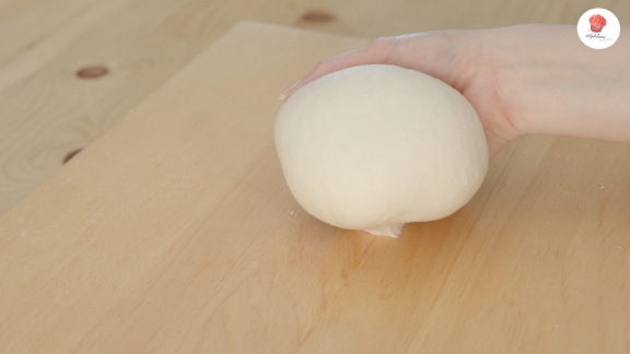 ห่อไส้ให้มิด แล้วกดเพื่อให้แป้งติดกัน แล้วปั้นให้เป็นก้อนกลม